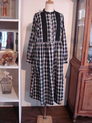 コットンの秋らしいモノトーン系チェックを使用したワンピース。