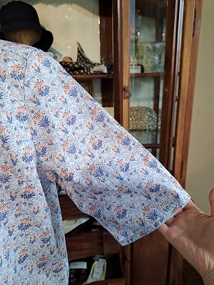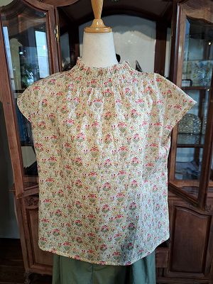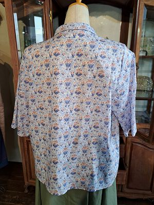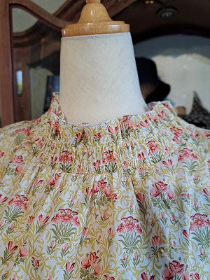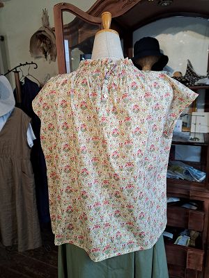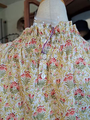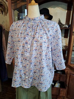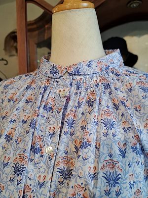 リバティプリントチビ丸衿ゴムシャーリングブラウス6分袖(sosotto)
