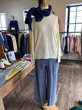 イエロー丸首プルオーバーブラウス(Leshy forest)