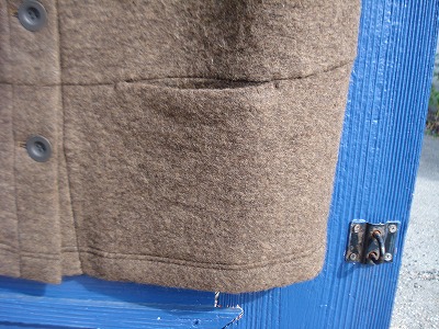 大きめのアンティークゴールドの釦がアクセントとなり、