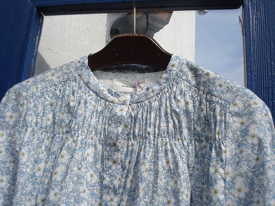 LIBERTYタナローン生地と胸元に2本入ったゴムシャーリングが作る