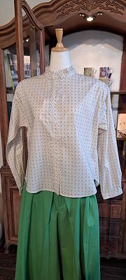 小紋柄プリントがどこか懐かしいブラウスです。