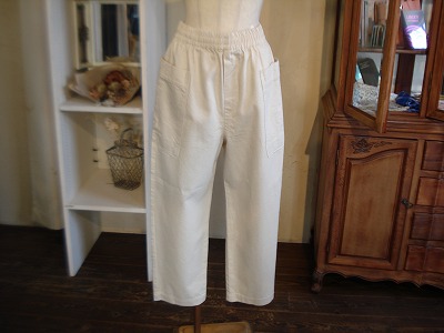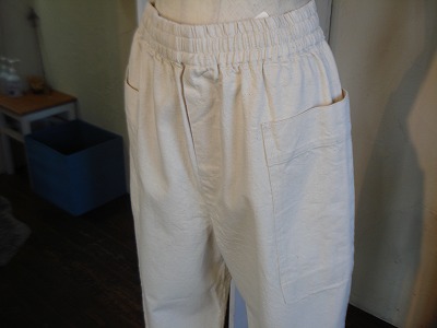 大き目ポケットがかわいい、ややカーブを帯びたパンツです。