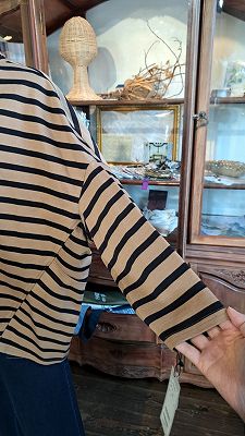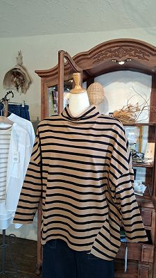 立体裁断と縫製でちょっと変わったデザインのボーダーカットソーです。