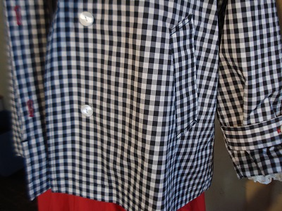 ボタンホールにレッドを効かせて、装いにほんの少しのリズムを加えてみました。