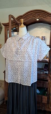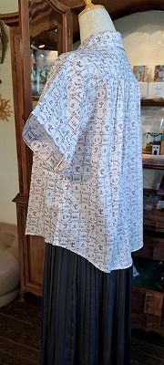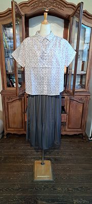 合わせやすいベーシックな衿付きブラウスをベースに前後に