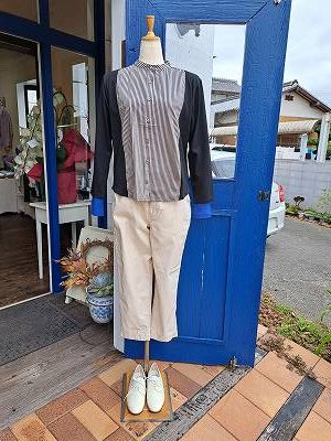 シャツ部分はミントと明るめのブラウン。