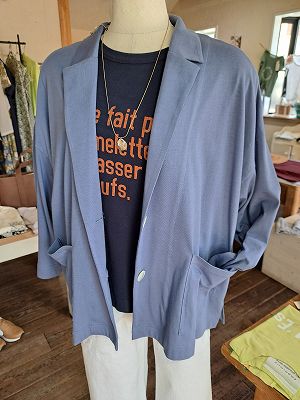 薄手のカットソー素材の、ボックスシルエットのテーラージャケットです。
