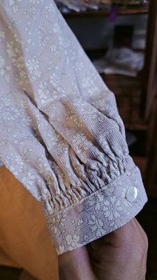 袖のシャーリングになっているところはゴムがはいっています。