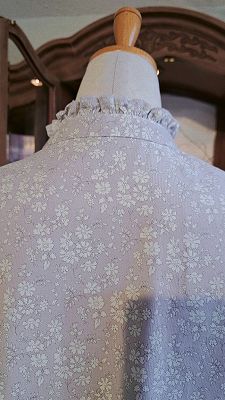 台衿から少しハイネック気味に配したタックフリル