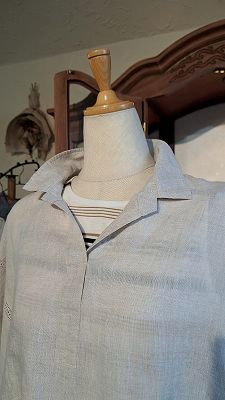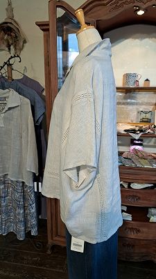 身ごろは柔らかいフレンチリネン100%、薄手で肌触りが良いです。