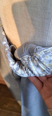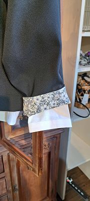 ジャケットの袖口裏側にある、LIBERTYプリント、MayMorrisの柄を
