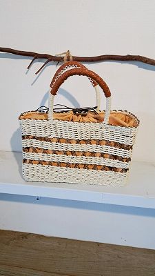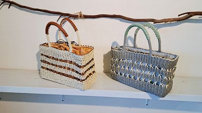 ペーパー素材を、しっかり編み上げたスクエア型トートバッグです。