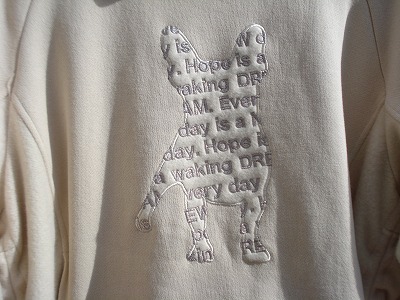 DOG柄が起毛のようになっているので浮き出たように見えるんです。