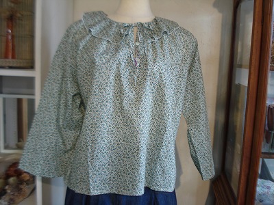 ●LIBERTYタナローンフリル衿リボンブラウス8分袖(sosotto)