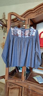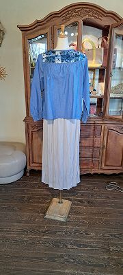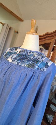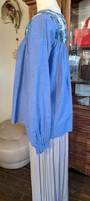 綿麻シャンブレ×LIBERTYヨーク切替ゴムシャーリングブラウス(SOSOTTO)