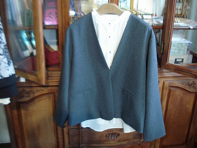 麻見えの織りのさらりとした生地を使用したノーカラーJK。