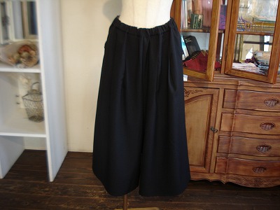 麻見えの織りのさらりとした生地を使用したスカート見えパンツ。