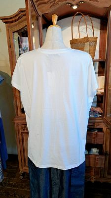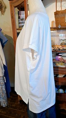 ゆったりシルエットが体の線を拾わず、ちょっと長めの着丈は前後さをつけて軽やかにしてあります。