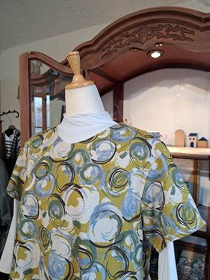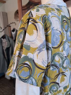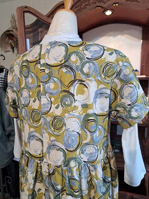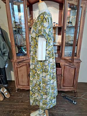 綿麻のシーチング生地を使用した華やかな柄のワンピースです。
