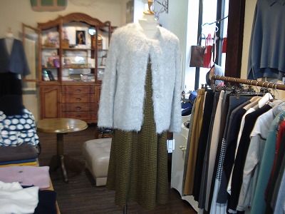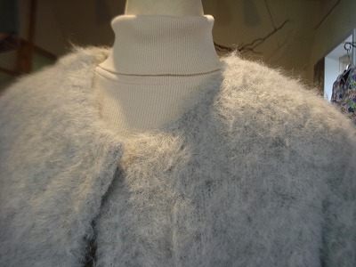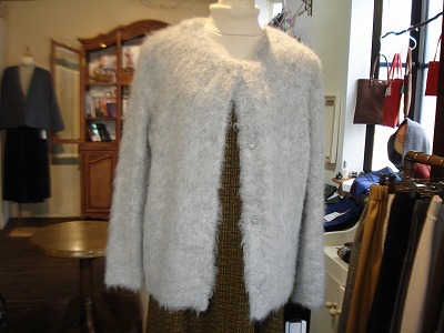着丈やや長めの厚手でないのにあったかいカーディガンです。